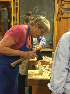 In contrast hand crafting, including Spoon Carving, connects our brains to our fingers, to many muscle groups, and to other parts of our bodies. Most people, after their first go at spoon carving- whether with axes and knives, or with mallet, gouge and spokeshave - will complain of aching arms, hands and fingers. Their body is talking to them. In time, over more spoons, the sensation of physical tiredness is replaced with an awareness of the growing strength in the hands, arms and fingers. Combine this with the increasing sense of personal satisfaction in the skills being learned and demonstrated, the growing inner sense of accomplishment, the increasing affirmation of others, and we have the ingredients for a beneficial past time. While sitting in a chair carving spoons with a knive is still relatively sedentary, so many other physical and mental benefits flow from this activity. Funnily enough, the growing time spent carving spoons commonly corresponds to a reducing time aimlessly sitting staring at our digital devices!