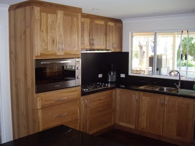 | The black granite tops and the Blackbutt doors and panelling go together very nicely. |